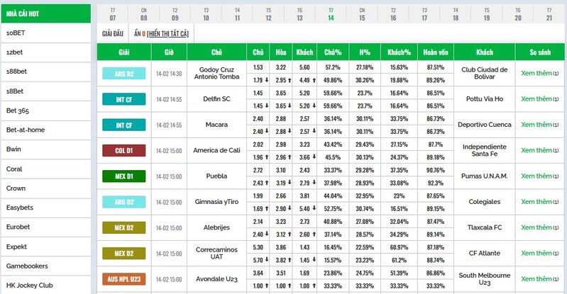 - So sánh mức chấp giữa nhiều nhà cái khác nhau