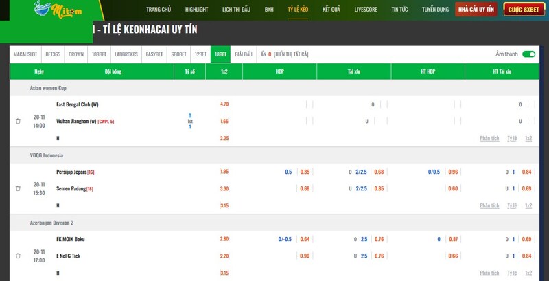 Ngày nay, bóng đá không chỉ là những bàn thắng đẹp mắt hay khoảnh khắc bùng nổ cảm xúc. Nếu nhìn sâu hơn, tỷ lệ kèo bóng đá hôm nay chính là ngôn ngữ chiến thuật ,nơi mọi biến động nhỏ đều phản ánh sự thay đổi về tâm lý thị trường, đội hình ra sân, hay cả chiến lược của huấn luyện viên. Và nếu anh em muốn đọc hiểu ngôn ngữ này một cách dễ dàng, Mi Tom TV là công cụ hoàn hảo.