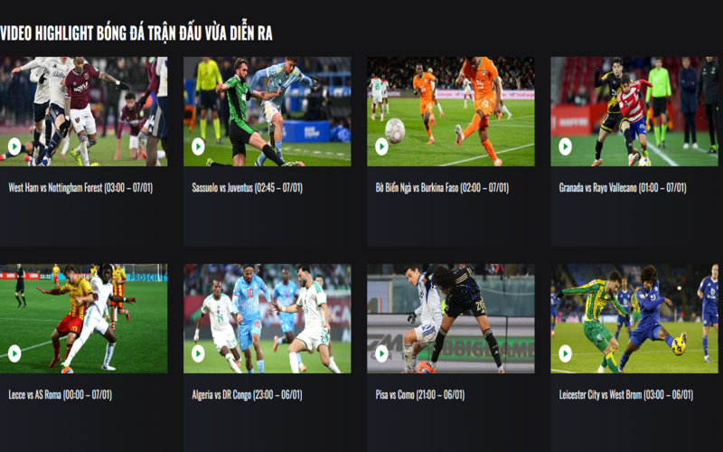 - Cập nhật nhanh chóng và chất lượng cao: Video highlight được cập nhật ngay sau khi trận đấu kết thúc, với chất lượng hình ảnh sắc nét, âm thanh rõ ràng, không bị giật lag.